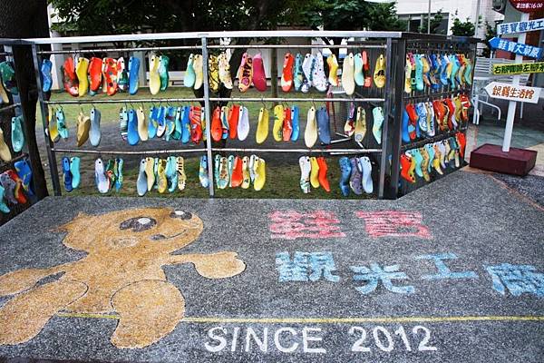 鞋寶觀光工廠成立於2012年,入口處的各種彩色吊飾鞋楦,增添了令人愉悅的色彩