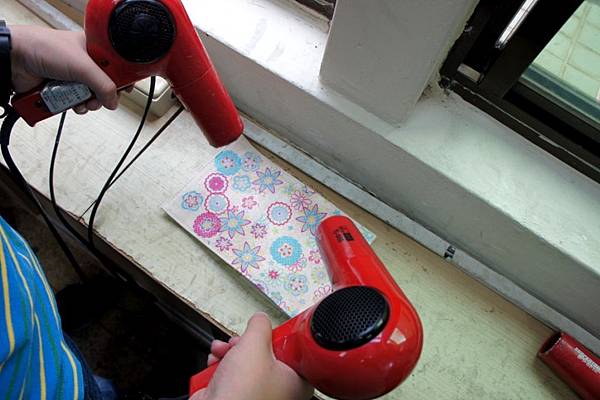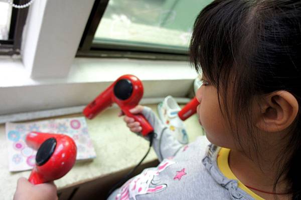拿起後方吹風機加速吹乾