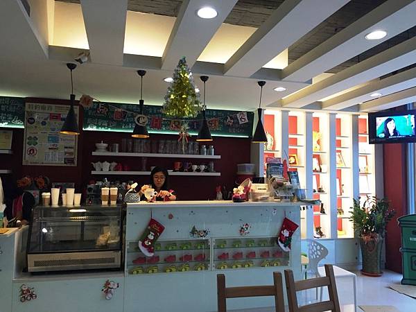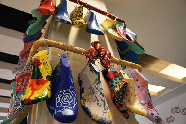 咖啡廳有用彩色吊飾鞋楦做佈置,很可愛