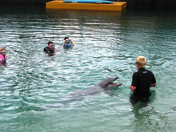 海豚會依照指令去做動作,跳躍、空中翻滾、轉圈,海豚表演的過程相當精采