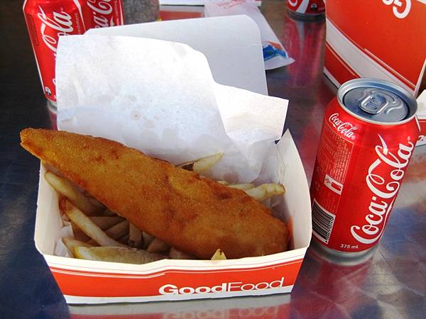 吃午餐時間到囉~澳式魚排餐,魚排+薯條+一罐可樂