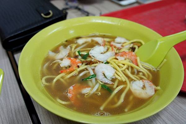 蝦麵的重點在蝦湯,據說是二戰期間檳城漁民非常困苦,把漁獲賣給日軍後留下蝦頭及蝦殼