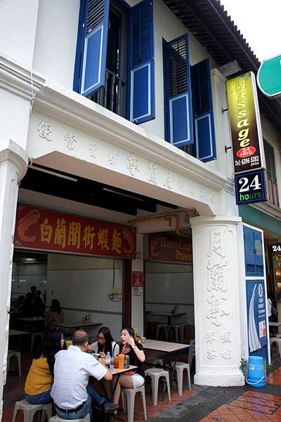 「白蘭閣街蝦麵」位在Haji Lane哈芝巷的入口處,很適合逛街前後填飽肚子的餐廳