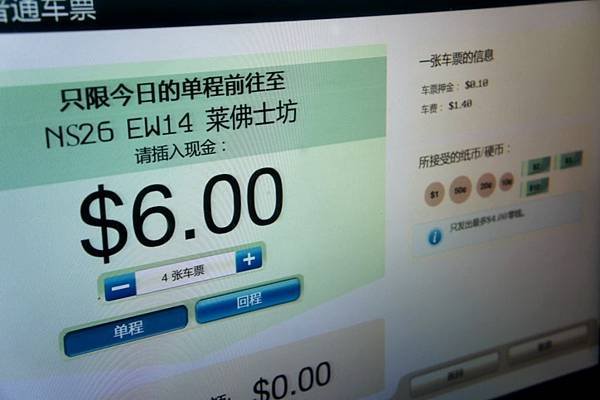 我們要搭乘到Raffles Place(EW 14)萊佛士坊,SD$6,NT$141 (四人)