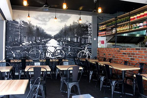 I am西式速食餐廳,現代時尚餐飲風格,賣漢堡、薯條、三明治等的速食餐廳