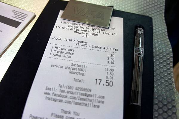 本次消費SD$17.5,NT$411.25,另外收10%服務費