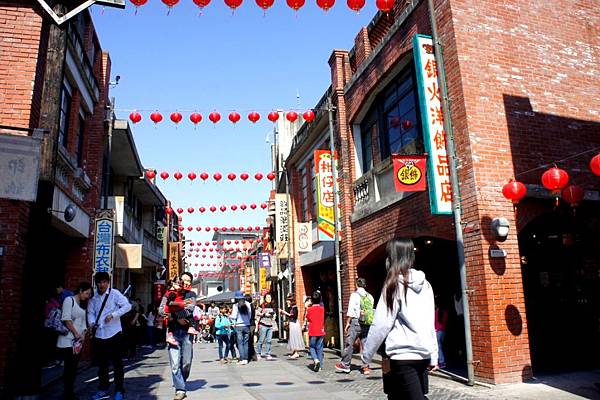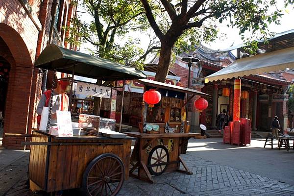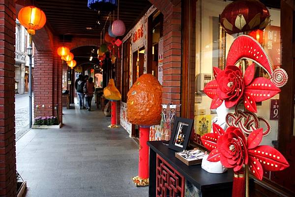 民藝大街裡,一棟棟的樓舍內都是各式富含台灣古早味的店家進駐
