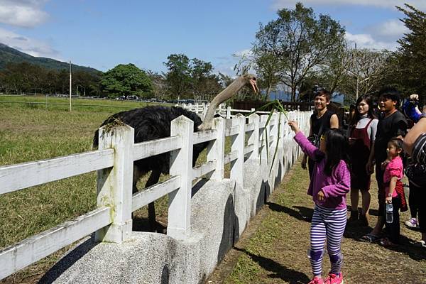 以牧草餵食,體驗餵食樂趣,鴕鳥爭食的逗趣畫面,讓大人小孩笑聲不斷