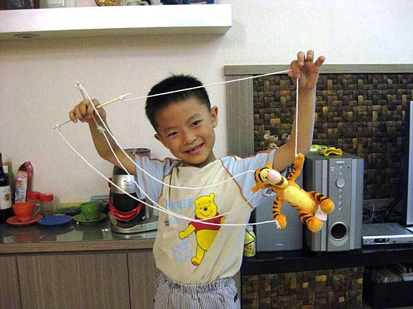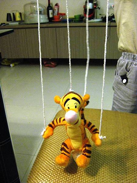 尋找好久的玩偶 , 縫上四條線 , 綁上竹筷子
