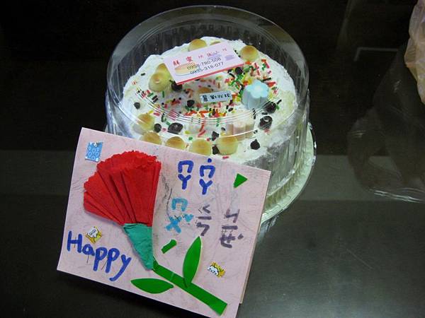 挖~這是好ㄔ的蛋糕~配上溫馨的卡片-感動 ![]()