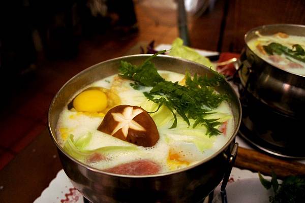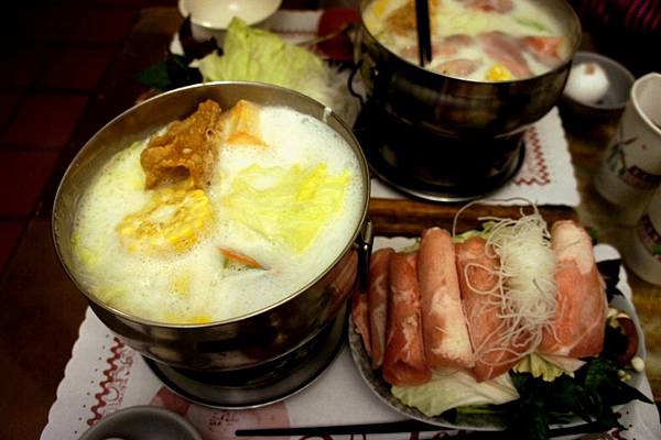 鮮奶火鍋的湯底是用蔬菜高湯加上新鮮牛奶熬煮而成