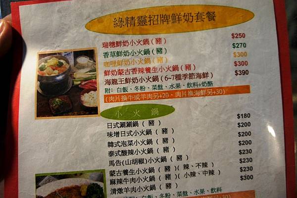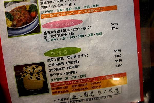 MENU有分:招牌鮮奶套餐、小火鍋和焗烤類