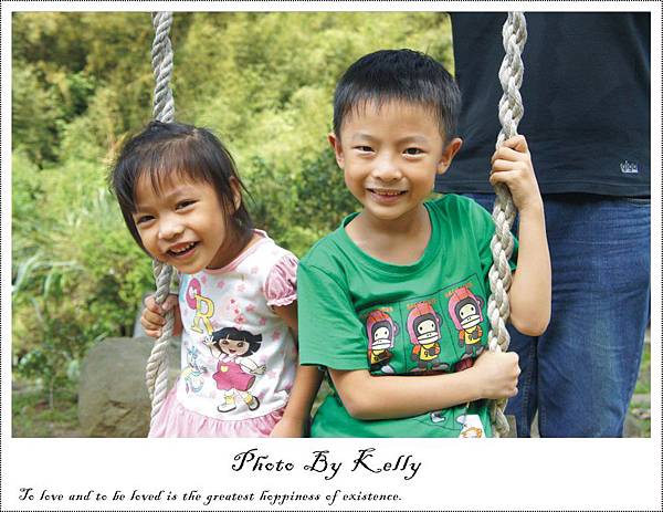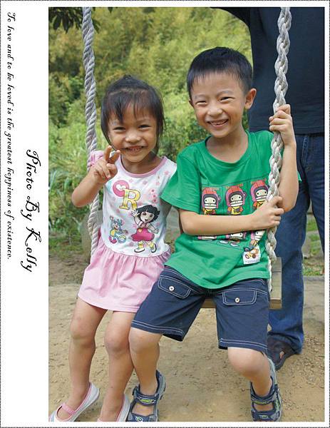 樹上掛著鞦韆,小孩上去盪了幾下....好開心!