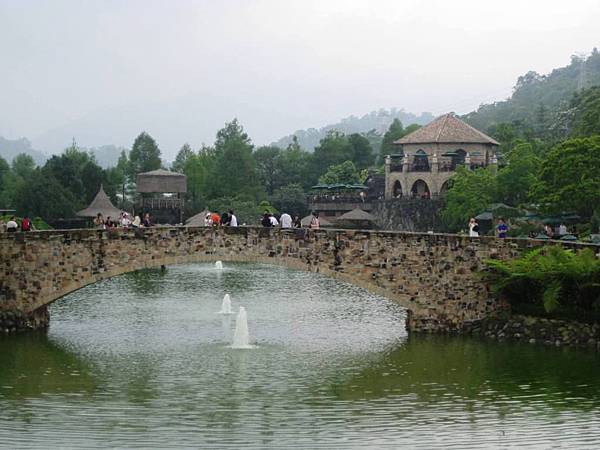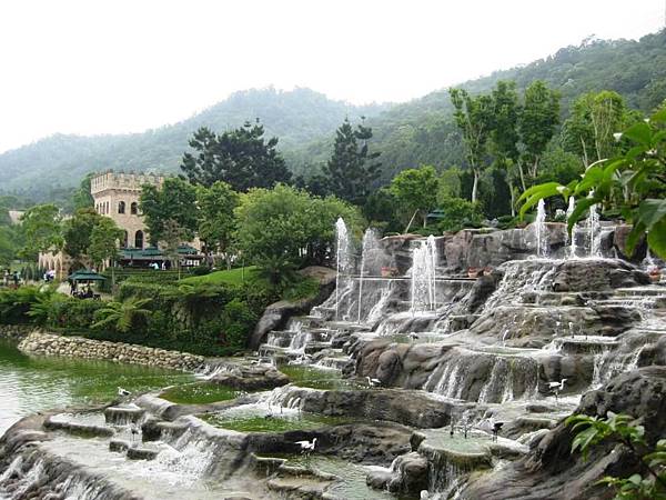 新社古堡興建在山林密佈的土地上、開發上保有原本的山林也加入了不少的人工造景