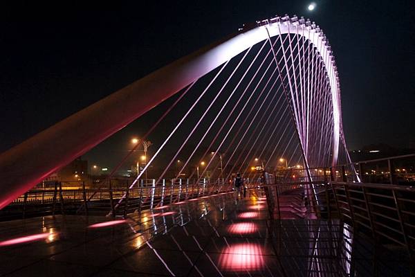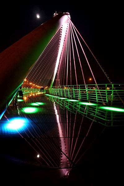 夜晚能反射出斜張橋的另一半變成一個大愛心,就能將橋上情人包在愛心裡 ![]()
