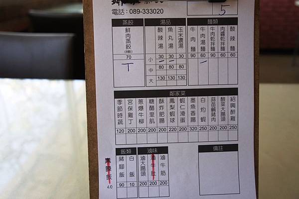 價目表,除了麵點,還有快炒、燉煮、涼拌等菜色