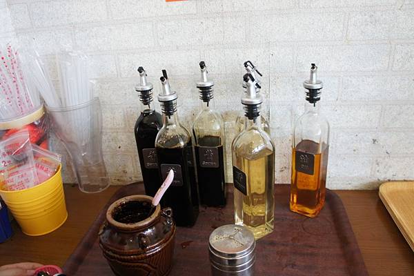 沾醬區,從蒜頭、青蔥、薑絲、醬油、香油、醋和辣椒等應有盡有