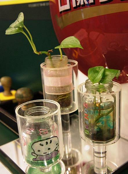 回收的雞精瓶在巧手創意下,都成了可愛精緻的藝術品