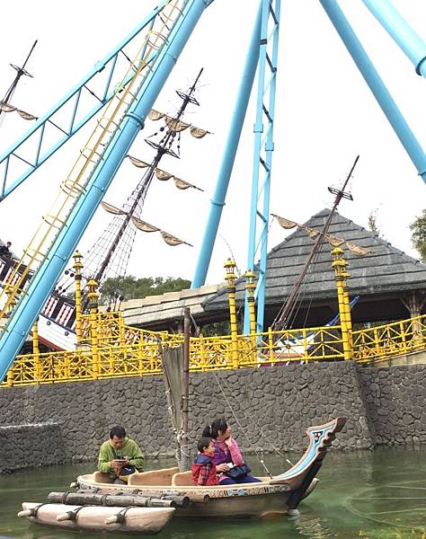 獨木舟,池中設有八十四公尺長的軌道,以牽曳系統控制~隨著森林鼓聲的節奏,可以享受風平浪靜的親子時光
