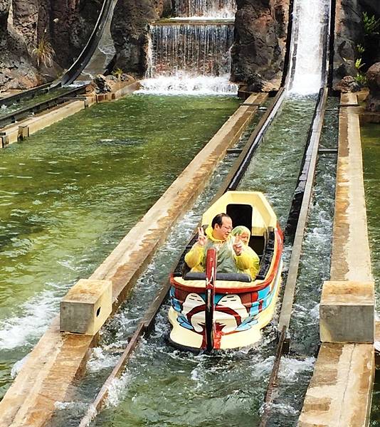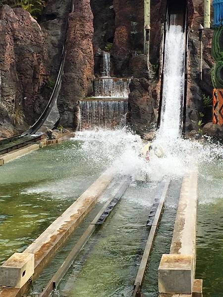 火山歷險,獨木舟緩緩上升,真正緊張的時刻是從火山口三層樓高的急流處瞬間俯衝而下
