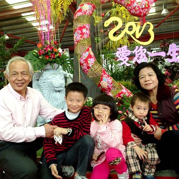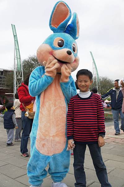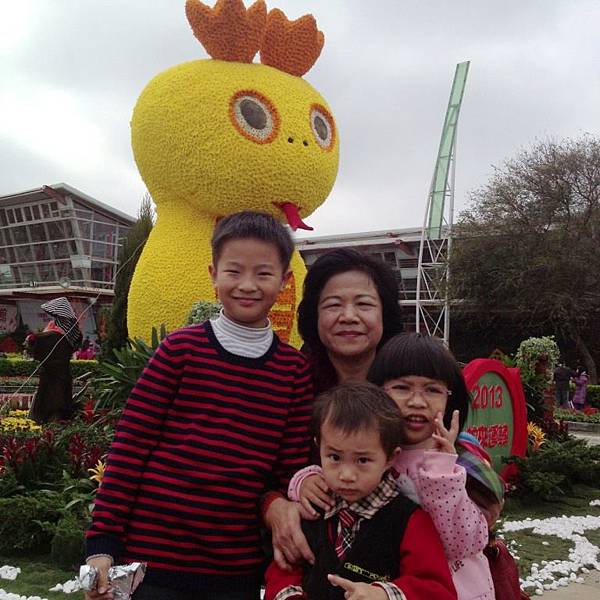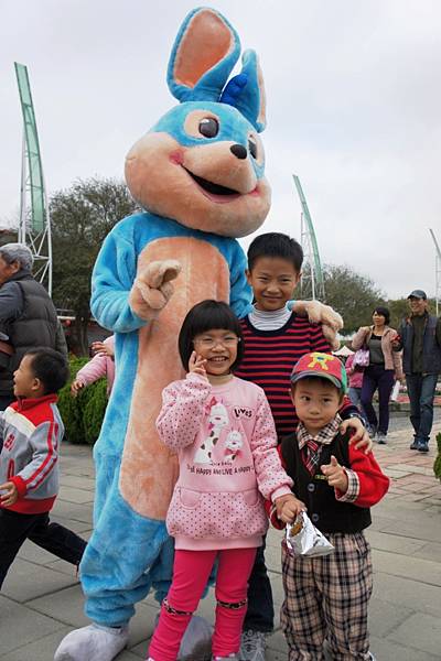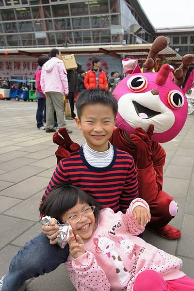 今年的吉祥物小花蛇,因為戴了兩朵怪怪的花,遠看實在不像是一條蛇