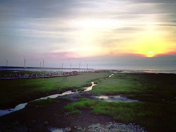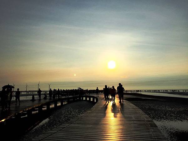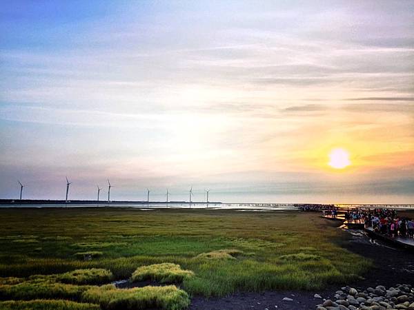 到了黃昏,繽紛炫麗的夕陽,更將高美濕地點綴得更加浪漫
