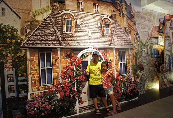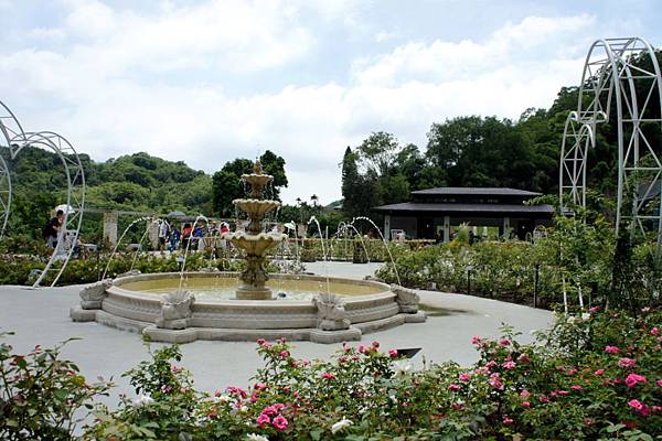 心形拱門,旁邊圍繞著玫瑰花圃,一圈又一圈的愛心造型中間~是個小型噴水池