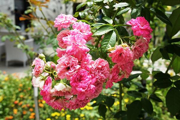 坐在這喝杯咖啡欣賞滿園的玫瑰,真是太幸福了!