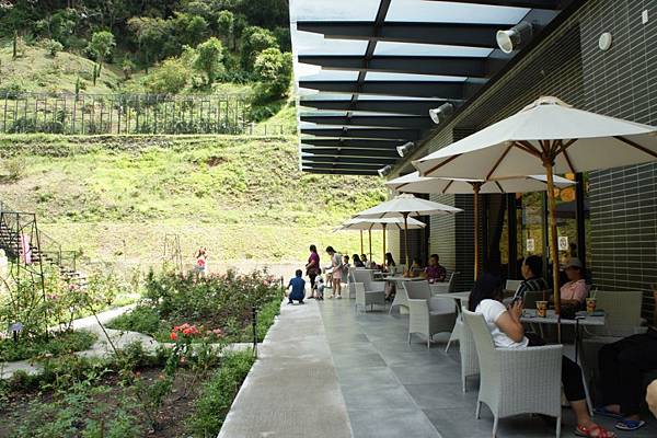 坐在戶外的座位區,被大量的花圃圍繞著,愜意的喝著飲料,欣賞著自然風光