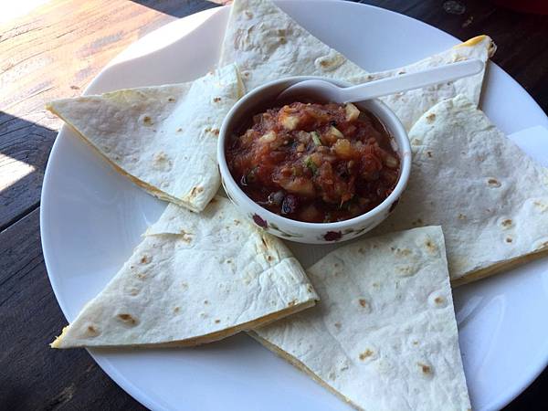 原味起士餅$100挺美味,帶著起司濃郁香氣的脆薄餅,搭配沙沙醬吃,再配上咖啡或花茶