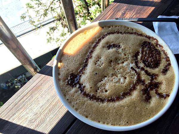 事後才知道,原來可以請店家在上面寫上任何字,我們沒有要求,所以當天咖啡上的拉花是