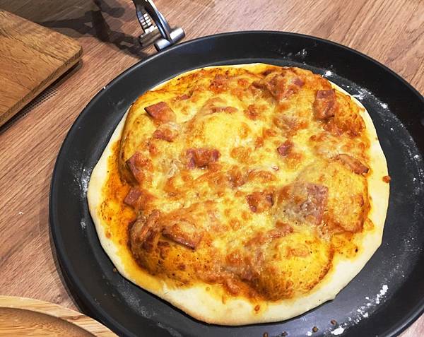 他一直說買材料在家做就好了,我想他直接去披薩店買成品比較快吧!哈哈!