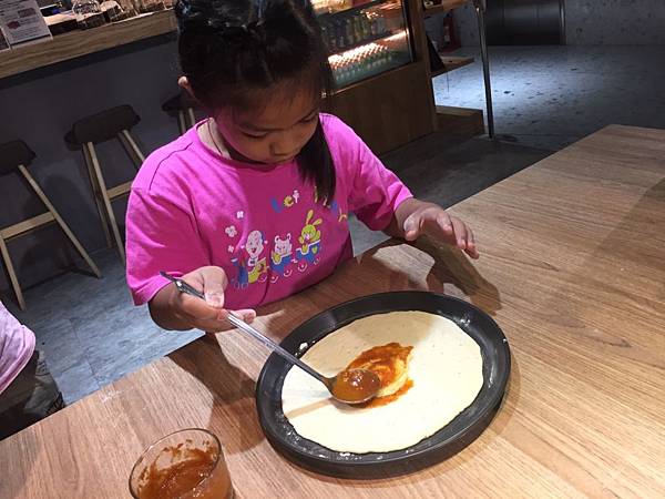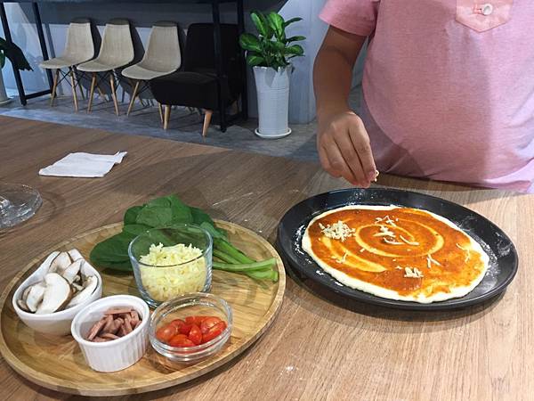 但我還是買了兩張PIZZA餐卷,讓孩子體驗製作披薩DIY