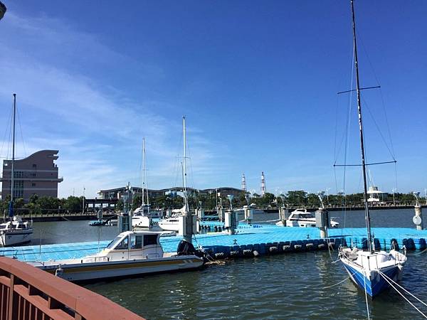 浮動碼頭,碼頭上停放著大小各式遊艇