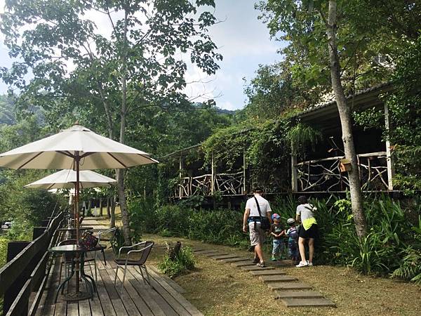 經過木橋後沿著外圍繞就到了露天休憩區,露天區可以看到對面的內灣站很美