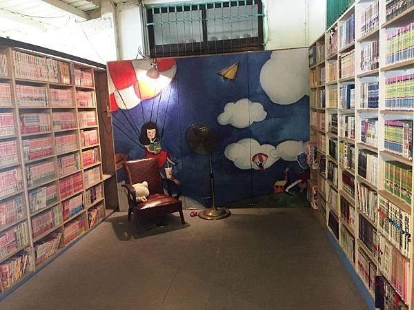 漫畫閱覽區,閱覽區內放置復古小沙發椅,讓民眾可以舒適坐著看書