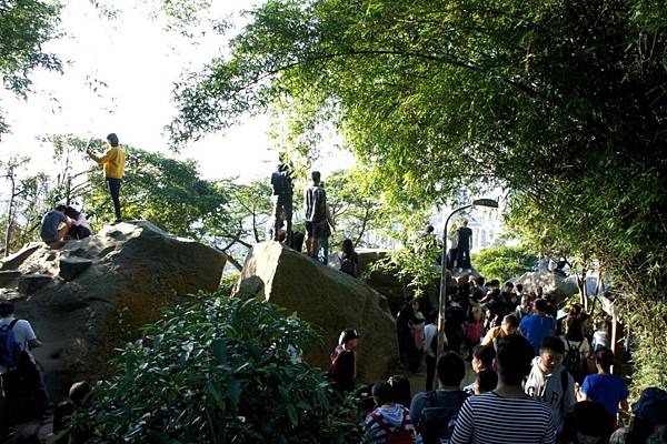這裡是攝影熱門位置,巨石上已被早到的民眾給佔據